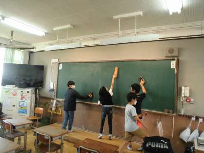 教室の黒板をきれいにしてくれています。ありがとう!明日もみんなが気持ちよく学習できるよ。