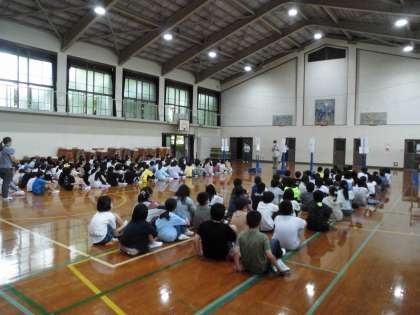 万が一に備えtwの訓練です。クラスごとに並んで話を聞いています。実際の動きを確かめました。
