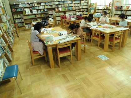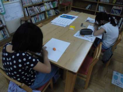 アート部の活動が開始です。静かにそれぞれがお気に入りの絵をかいています。