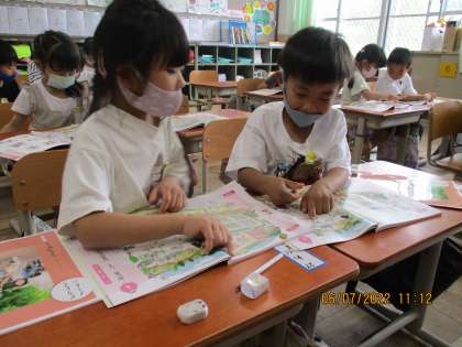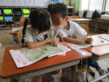 道徳の学習で,学校生活に関わる「よいこと」と「わるいこと」について考えました。「落書きはだめだと思う。」「廊下を走るのは危ないからだめ。」「順番をまもっているのは良い。」「水やりもいいと思う。」など,自分自身の学校生活に照らし合わせながら考えていました。