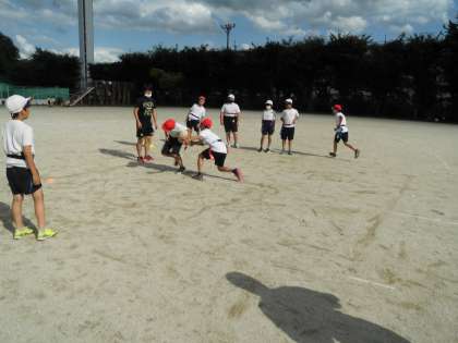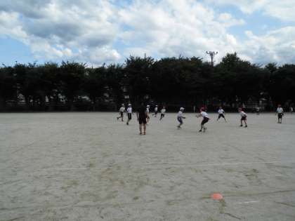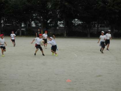 放課後の広い運動場を使って5,6年生がタグラグビーをしています。「タグ!」という元気な声が響いています。とっても楽しそうです。