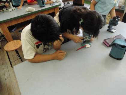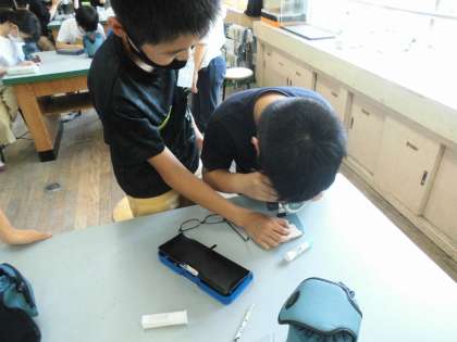 顕微鏡でいろいろなものを見ました。自分の指先を見たり,塩を見たり…顕微鏡の使い方もとても上手です。