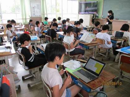 「歌のにじ」をリコーダーで演奏したり,歌ったりしました。自分が演奏したり,歌ったりしている様子を動画に撮ってみて,振り返ってみることもしています。