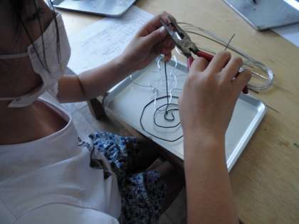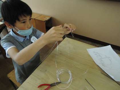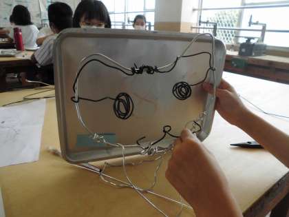 2組は今日から針金を曲げたり切ったりしてワイヤーアートを作りだしました。静かな教室の雰囲気の中に,真剣な表情で取り組む熱さがあり,取り組む姿勢がとてもかっこよかったです。最後に上手に立たせることができるように頑張りましょう。