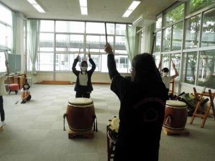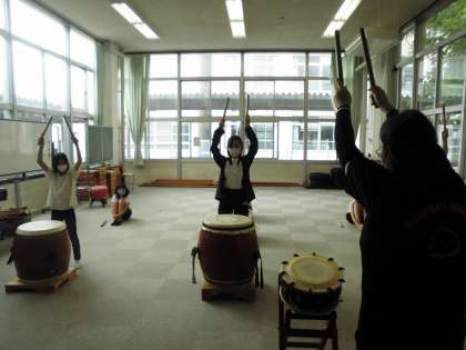 音楽部です。今日は和太鼓の練習をしました。みんなかっこいいです!