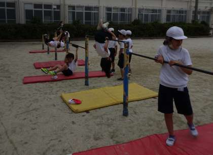 「前にできなかったけどできた!」「連続できるようになった!」など,ふとした拍子にできた自分に驚いている子もいました。友達ができたことを周りの子が拍手して,一緒に喜び合う姿が素敵でした。