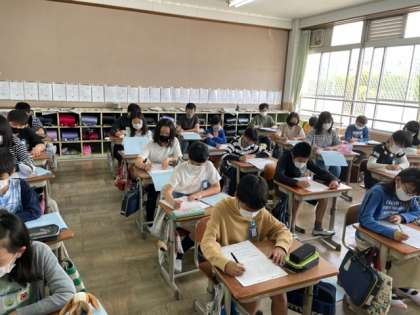 毎日のぐんぐんタイムでの学習では,簡単な計算プリントや学習したことをふり返るためのプリントをおこなっています。分数の計算では,途中約分に気を付けて慎重に計算を進める姿が見られました。苦手な部分も練習を重ねれば必ずできるようになります!がんばれ!6年生のみんな!!
