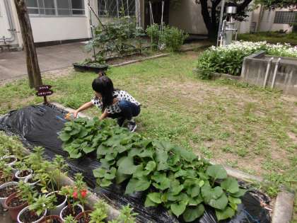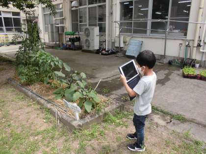 一雨ごとに,ぐんぐん大きくなる野菜たち。子どもたちは今日も,タブレットをもって観察に出ました。トマトやキュウリの実を見つけては,シャッターをきっていました。収穫が楽しみです。