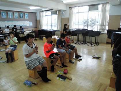 それぞれのパートに分かれて熱心に練習していました。みんなとっても上手です。
