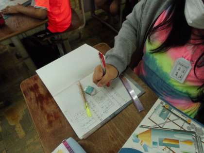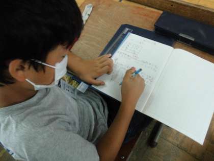 小数の割り算の学習です。ある数を1とした時の大きさの表し方について考えました。それぞれが今までに学習したことを使って問題に取り組んでいました。どのように考えたのかを交流しました。