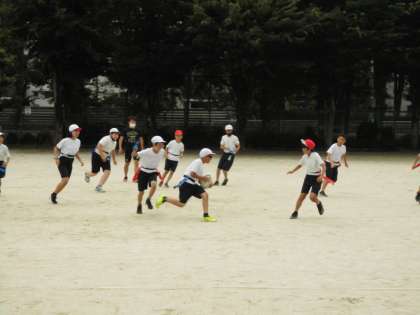 練習試合をしました。暑さを吹き飛ばすようなスピードで走っています。がんばれ!