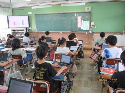 今日は小中連携で,中学校の先生が授業見学に来られました。新聞作りをするために,アンケート調査の方法を学びました。アンケートで「中学校の先生に聞きたいこと」調査し,授業の最後に中学校の先生から色々なことを教えてもらいました。中学校へ向けて,これからもが学習をがんばってほしいです。
