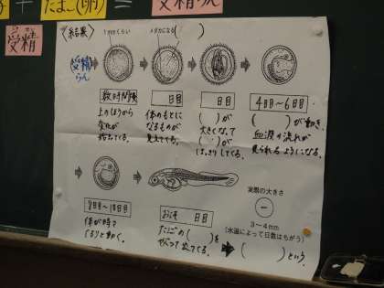 メダカがどのように成長しているのか,確認しました。日々,メダカの卵をチェックしていますが,どのように卵ができているのか知りました。命の素晴らしさを感じることができました。