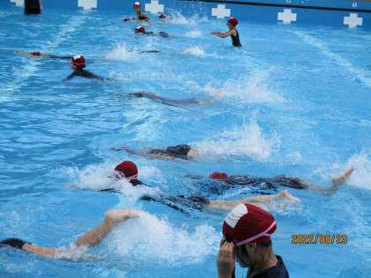 今日から4年生の水泳学習がはじまりました。天気もよく,プール日和でした。浮いたり,もぐったりと楽しく活動できました。