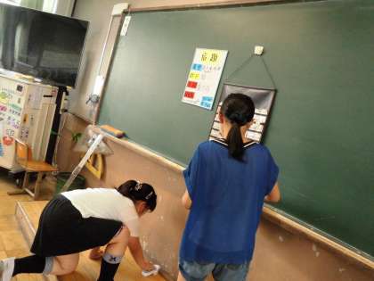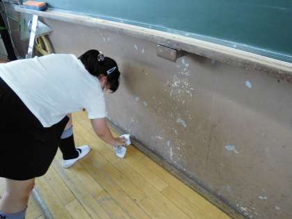 黒板をきれいにしてくれています。チョークの粉をきれいにふき取ってくれています。ありがとう。