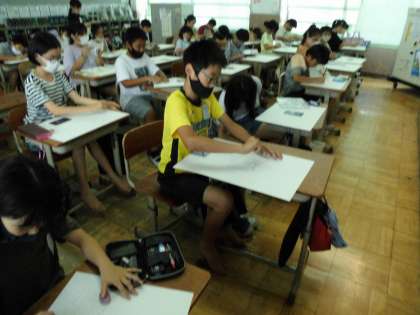 イメージを膨らませて自分の心に浮かんだ「世界」を描いていきました。