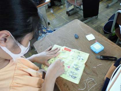 一人一人の集中力はすごいです。黙ってひと針ひと針心を込めて縫っていました。とても丁寧に取り組んでいます。素晴らしいです。