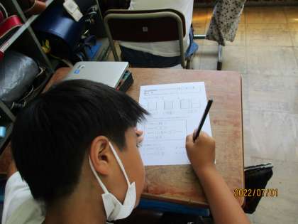 次に学習する単元で出てくる小数の復習をしました。自主学習ノートに家で練習してきている子もいました。3年生での学習を思い出して、新しく習うことと結び付けて覚えてほしいと思います。