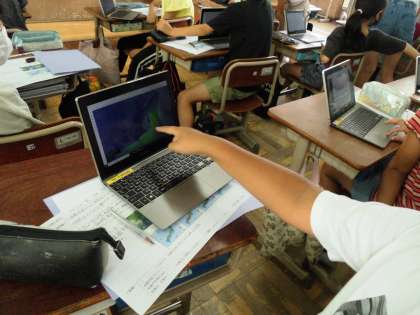 タブレットを使ってどんどん調べていきます。「あ〜!みつけたかも〜」