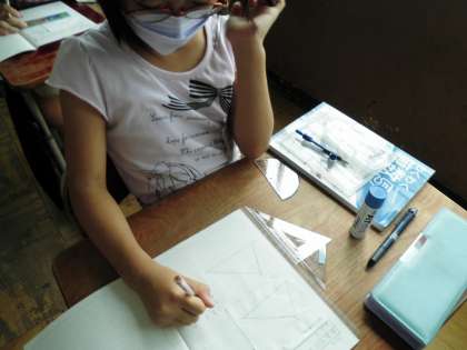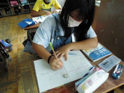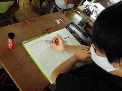 「合同」な図形を書く方法を一人一人が考えました。説明するのは難しいけれど、書きまとめていくと自分の考えもまとまってきます。よく頑張っています。