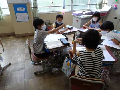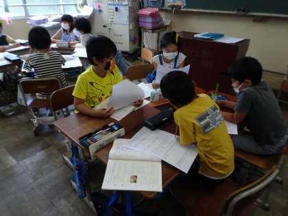 国語で作成した報告文を読み合い、感想を伝え合いました。友達の工夫したところやよかったところをどんどん伝えることができました。グループ学習が随分スムーズにできるようになってきました。