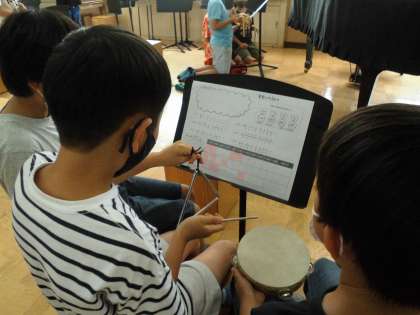 楽器の材質や音の響きに気を付けながら,強弱をつけたり,早さを変えたりして工夫しています。