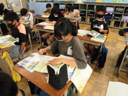 庄内平野の様子について地図や土地利用図の資料を見ながら調べました。