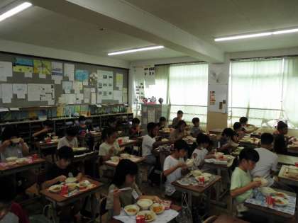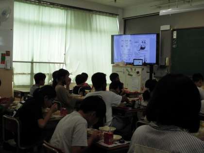 久しぶりの給食です。黙食,でもやっぱりみんなでいただく給食はおいしいです。
