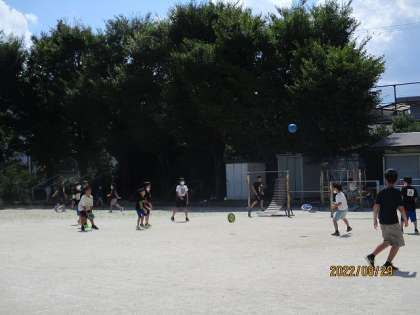 元気よく外で遊んでいます。他の学年とも仲良く遊ぶように話もしました。