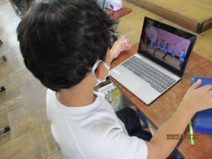 2学期の体育について話をしました。2学期は運動会があり、どのようなことをするのかを伝えました。子どもたちもよさこい鳴子踊りについて調べて、運動会に向けて少しずつ準備を始めてています。
