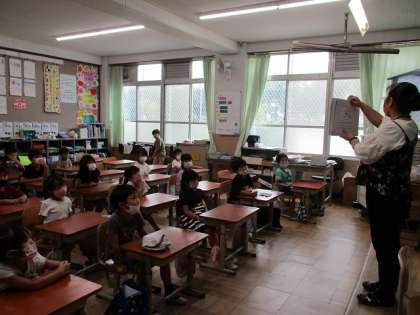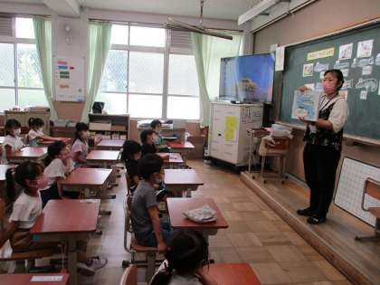 栄養教諭の阿野先生に、給食に出てくる魚について、いろいろ教えていただきました。魚の名前当てクイズでは、なかなか正答が出ませんでした。普段、食べるときには切り身が多いので難しかったようです。骨の取り方も教わったので、骨を上手に取って、食べられるように頑張りたいと思います。