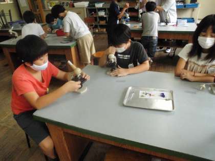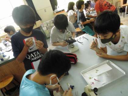 顕微鏡を使っていろいろな花の花粉を見ました。いろいろな形の花粉に大興奮でした。