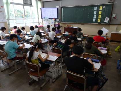 へんとつくりについて知る学習をしました。これまでに習った漢字から、きへんやにんべんなどを探してみました。「結構たくさんあるんやなあ。」「探すの楽しいなあ。」などととっても楽しんで、集中して学習した1時間でした。