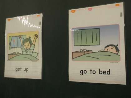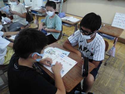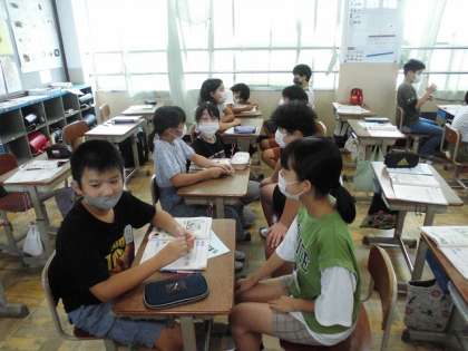 英語で起きる時間と寝る時間を尋ね合いました。実際にやってみるとなかなか難しいようです。繰り返し練習して上手になろう!