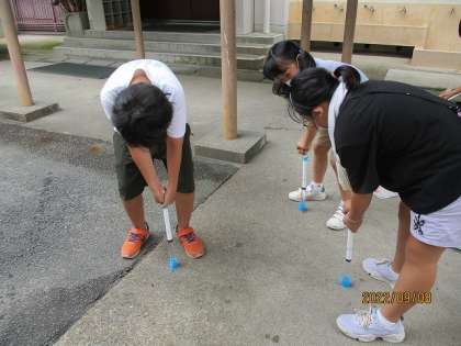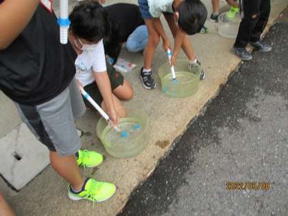 今回は、とじこめた水に力を加えました。空気とは異なり、体積が小さくならず、おどろいている様子でした。
