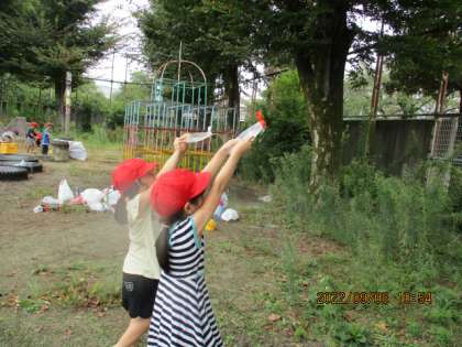 「どっちがとおくまでとばせるのかな。」