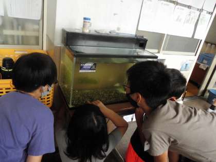 メダカの赤ちゃんが大きくなって,ナ,ナント卵をおなかに着けているのを見つけました。