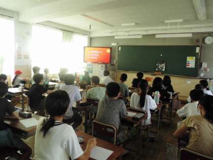 今日はとても暑かったので,体育館での活動ができませんでした。教室でバドミントンのルールやシャトルの打ち方の動画を見て学びました。