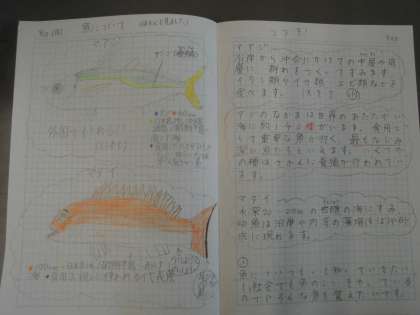 社会科で水産業について学習を進めています。どうやら魚に興味を持ったようで,図鑑を使って調べたことをまとめています。いいね〜!