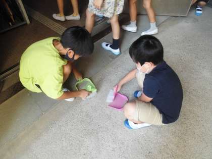 今日は児童用玄関付近を掃除している人たちに感謝を伝えました。これからもみんなで学校をきれいにしていきましょう。