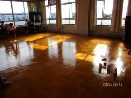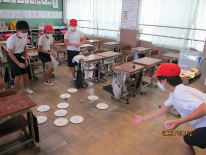 熱中症指数が高く、室内での活動になったため、お手玉を使ったゲームを考えて行いました。来月は、外で活動できればいいなと思います。