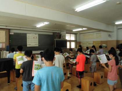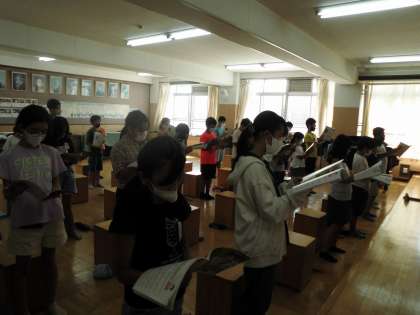 「こげよ,マイケル」の三部合唱をしています。どのパートも自信をもって美しい声で歌っていました。素晴らしい歌声です!