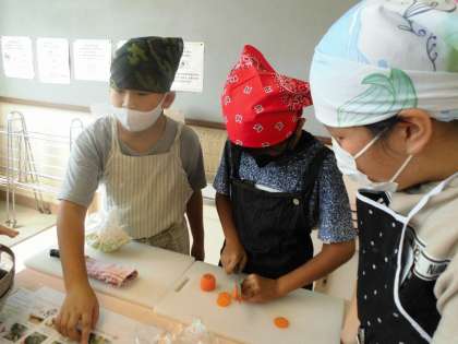 「猫の手で包丁はつかうんやな?」「にんじん,かたいなぁ」「5ミリってってこのくらいかな?」