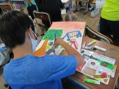 もう一クラスの「言葉から色・形」の学習の様子です。
