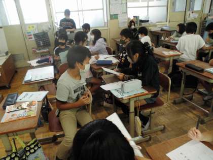 ペアになって休日の過ごし方についてたずね合っています。相手の答えに対するリアクションもとても上手になってきています。ナイス!