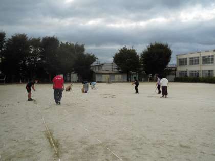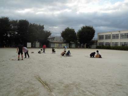 運動場のラインをきれいに打ちました。運動会が楽しみですね。