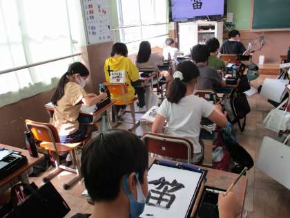 今日は、先週に引き続き「笛」という字を書きました。練習で書いた字をお手本と見比べて、次に書くときのポイントを確認していました。