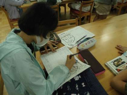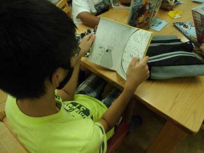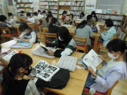 久しぶりの図書室です。お気に入りの本を手に集中して本を読んでいます。