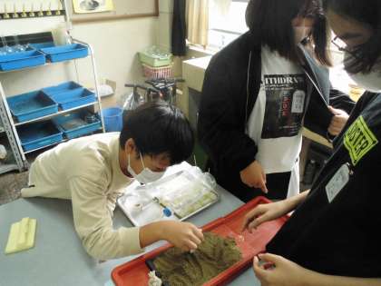流れる水の働きの「モデル実験」をしました。流す水の量を変えるとどうなるかな?