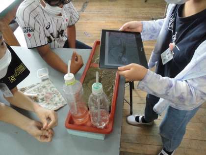 実験を開始し、予想と結果が一致しているのか確かめました。ほかの班と比較できるように動画で撮影する姿もありました。